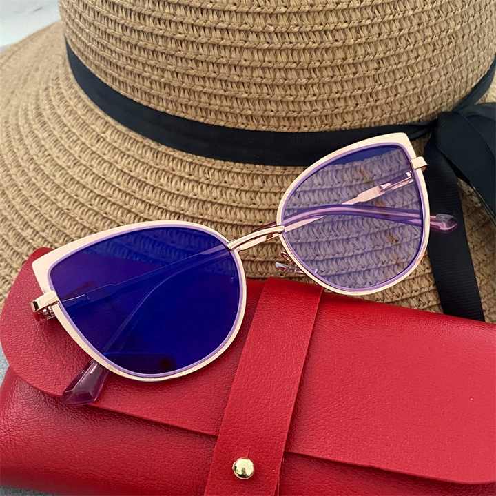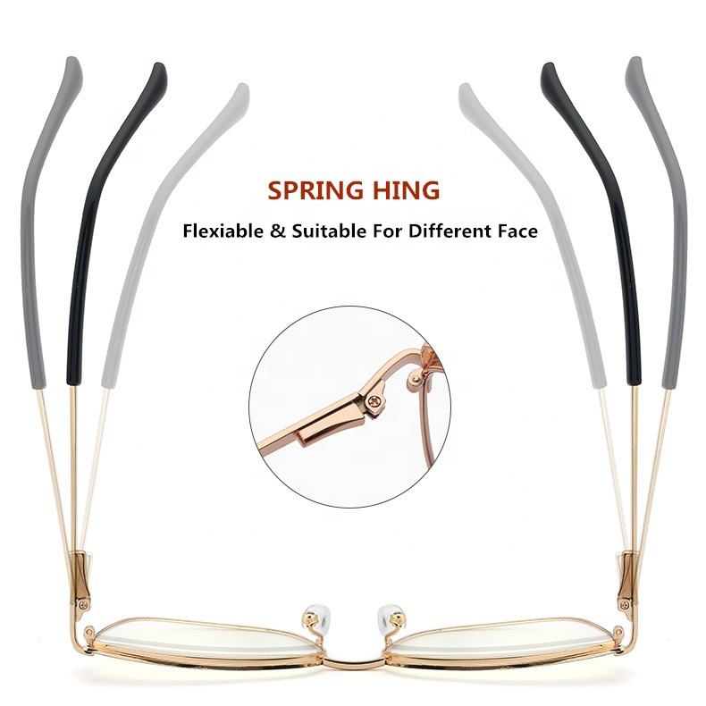 Lunettes de vue œil-de-chat pour femmes, monture métallique noire et dorée, charnière à ressort, verres antireflet bleus photochromiques (photogray)