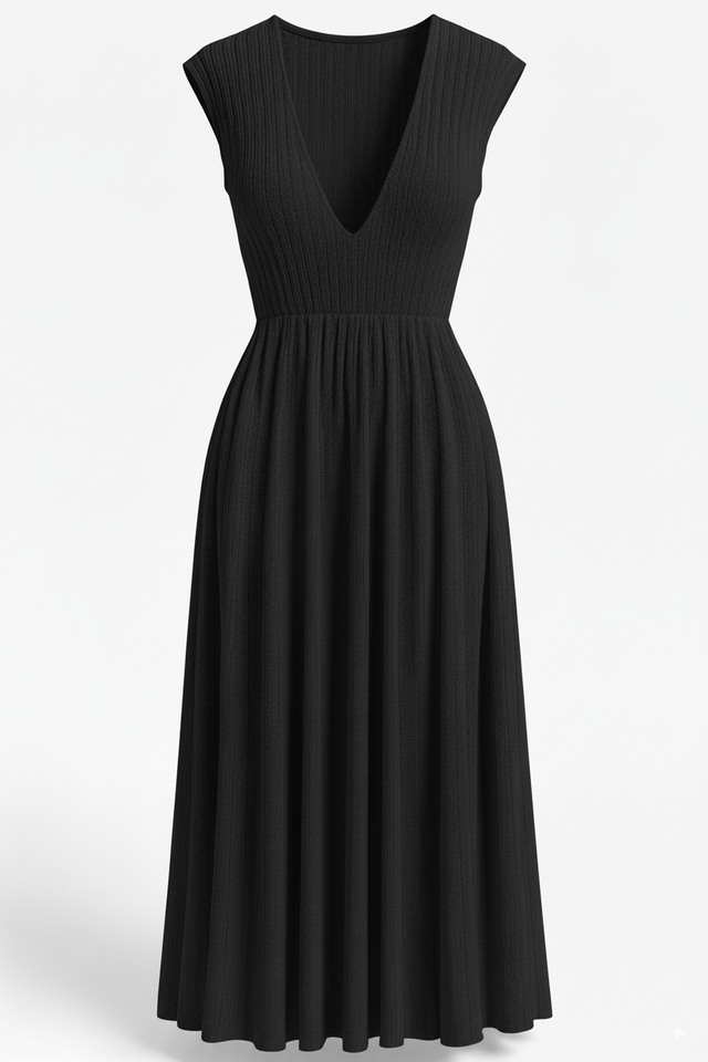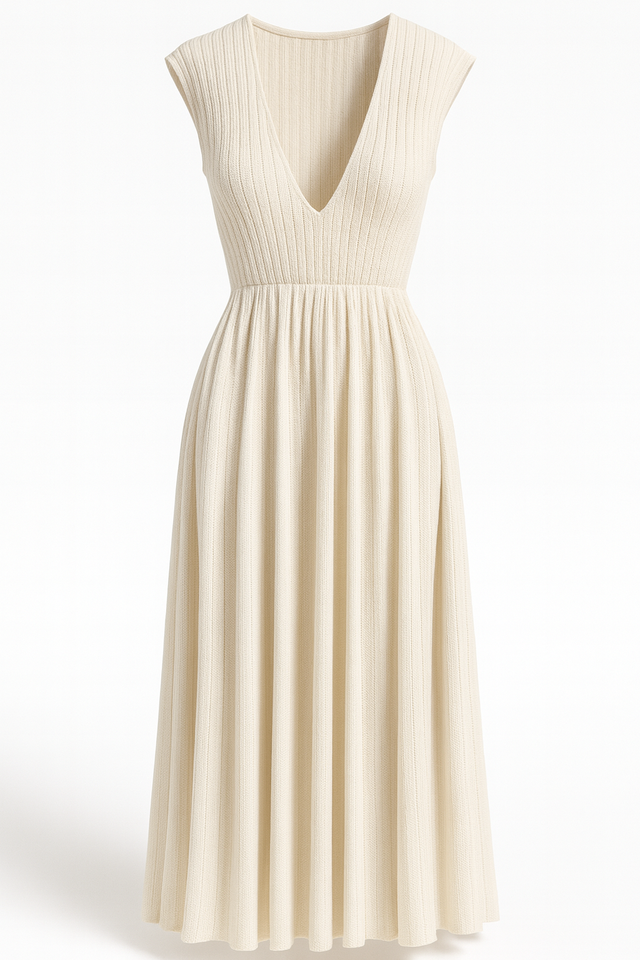 V-NECK KNIT MIDI DRESS
