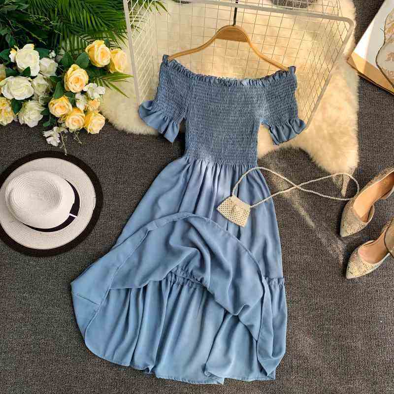 Robe mi-longue à volants pour femmes, couleur unie, épaules dénudées, Midi, tenue de soirée décontractée, robes de plage, de vacances, été,