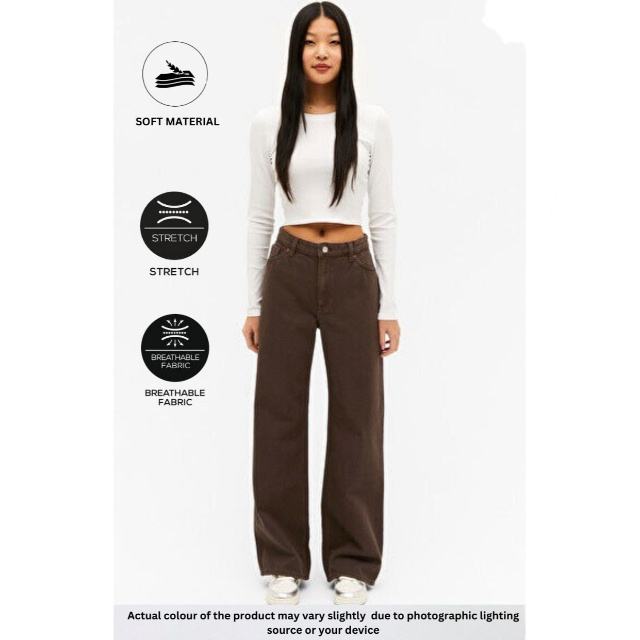 Fashion Women Wide Leg Brown Jeans High Rise Loose Fit Eco-Friendly Denim Pants Plating Durable Street Style Size 26-40 OSCA