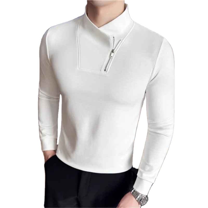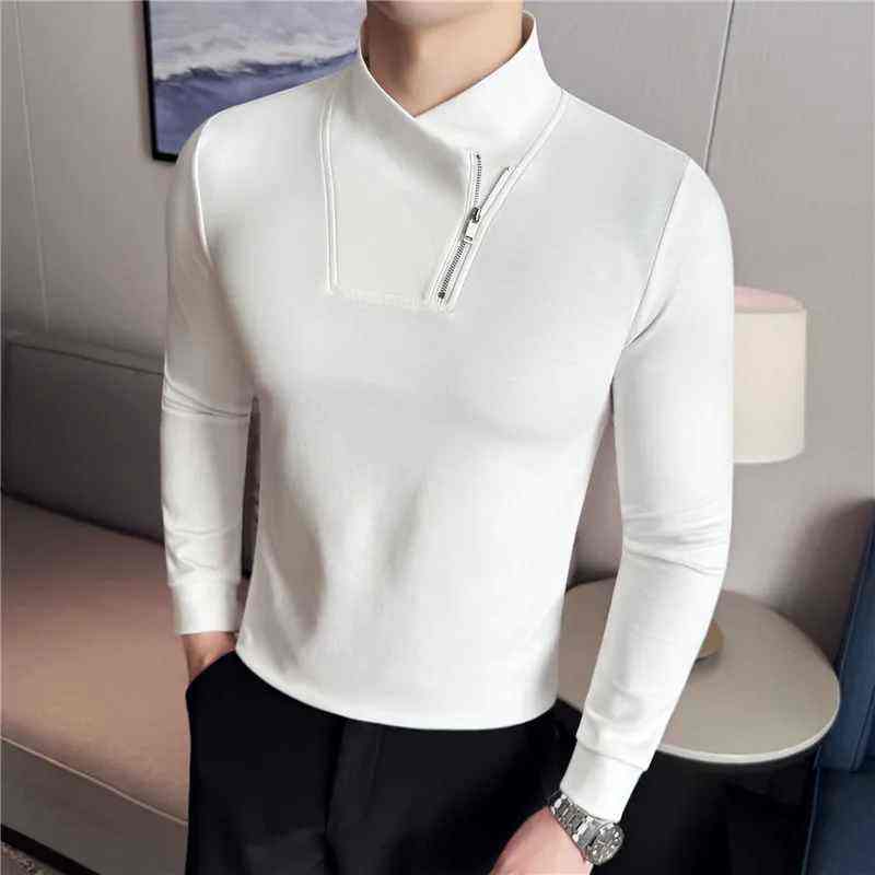 Mode fermeture éclair Semi col haut élastique T-shirt pour hommes Slim Fit col en v à manches longues Base chemise polyvalent décontracté affaires T-shirt hauts