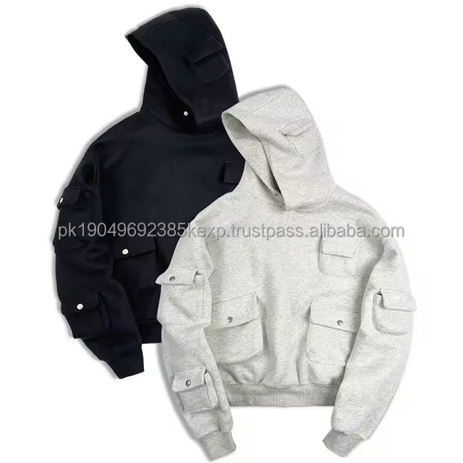 Fashion clothes Sports Latest custom 100% cotton pocket hoodie for men snap button plain cargo pocket hoodie