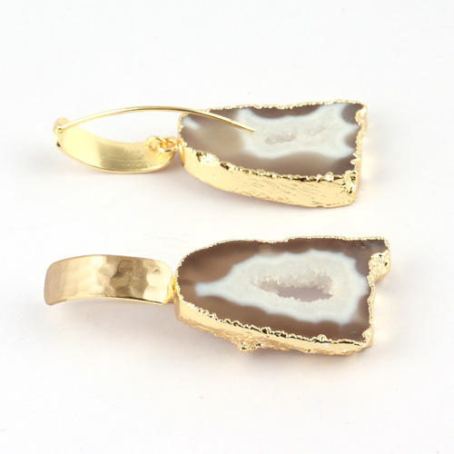Boucles d'oreilles en cristal, design tendance, boucles d'oreilles naturelles, géode, tranche, druse, femme, or, finition martelée, crochet, boucles d'oreilles pendantes