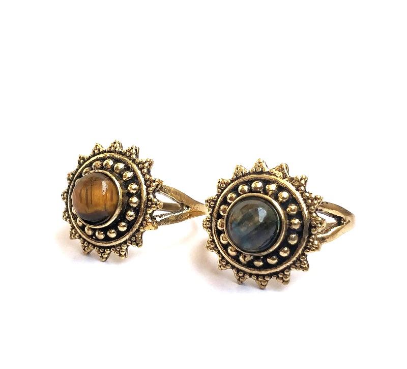 Style de mode pierres précieuses sans nickel en laiton tigre pierre anneau Labradorite unique pierre anneau conception pour les femmes cadeau