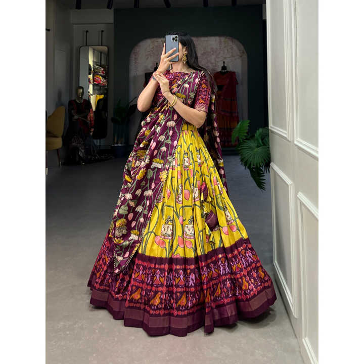 FashionHarbour Traditional Shibori Dyed Tussar Silk Lehenga Choli with Ornate Zari Weaving Budget Friendly Wholesale Deal