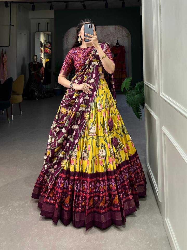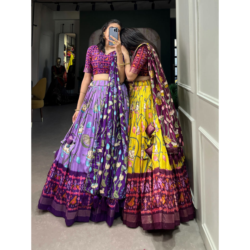 FashionHarbour Traditional Shibori Dyed Tussar Silk Lehenga Choli with Ornate Zari Weaving Budget Friendly Wholesale Deal