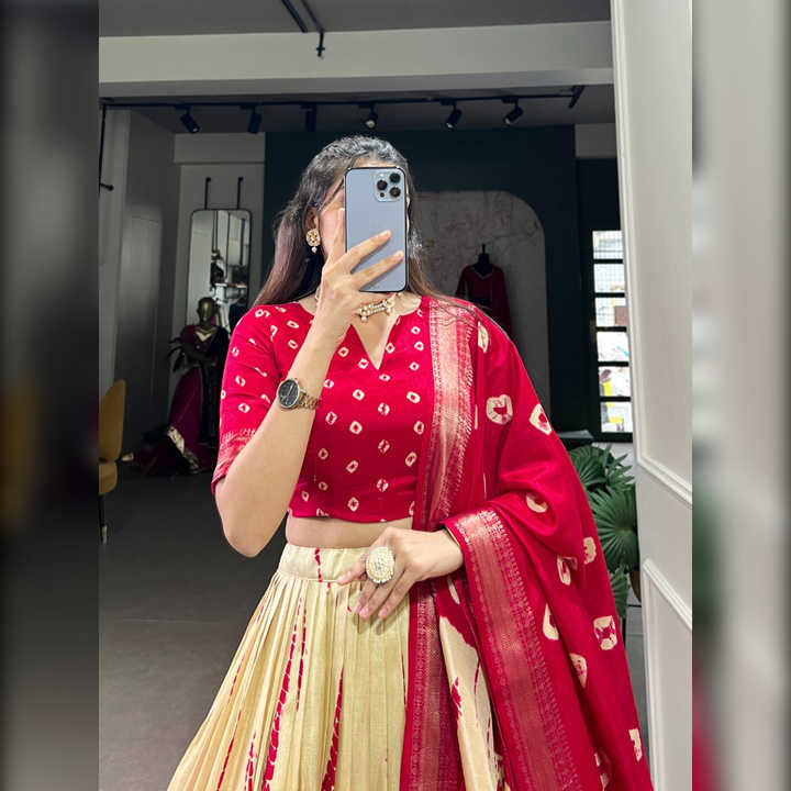 FashionHarbour Women's Bollywood Style Dola Silk Lehenga Choli Shibori Print Zari Woven Border Wholesale for Winter Parties