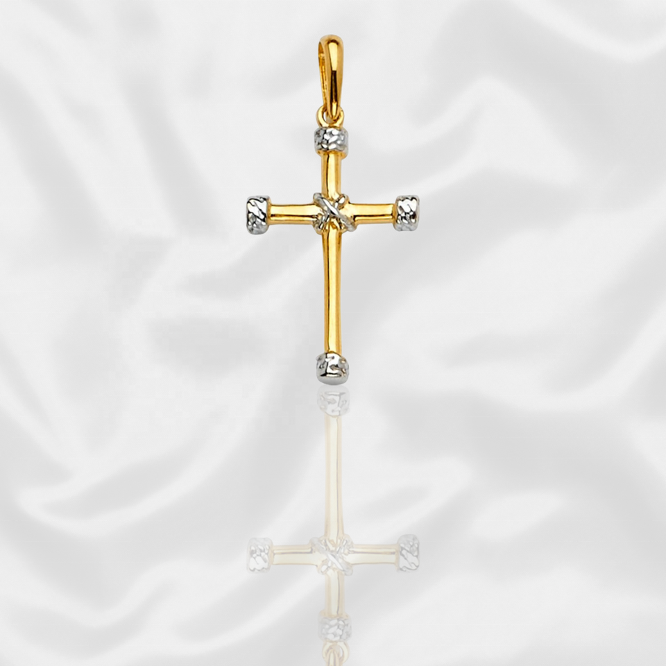 Pendentif Croix Crucifix en Alliage de Cuivre Plaqué Or Jaune et Blanc 14K de Haute Qualité, Bijou Religieux Chrétien Tendance
