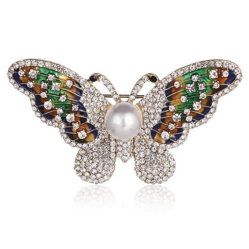 Alliage à la mode dégoulinant d'huile glaçure plein diamant papillon broche broche bijoux en gros