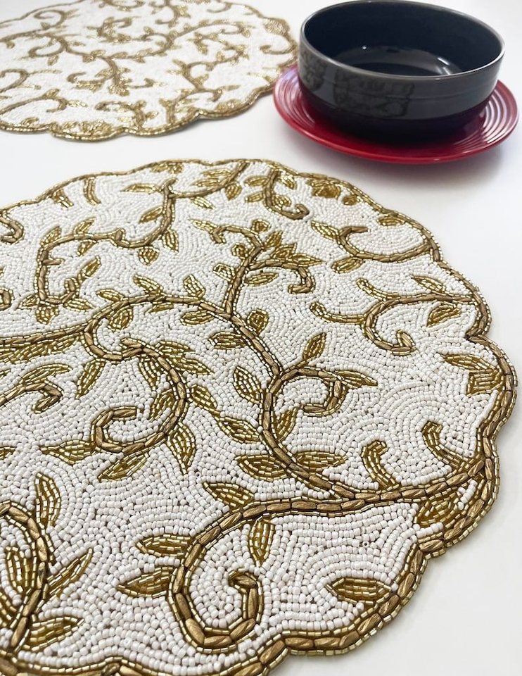 Napperons perlés ronds faits à la main, style indien, motif floral, pour la décoration de table, mariage et fête