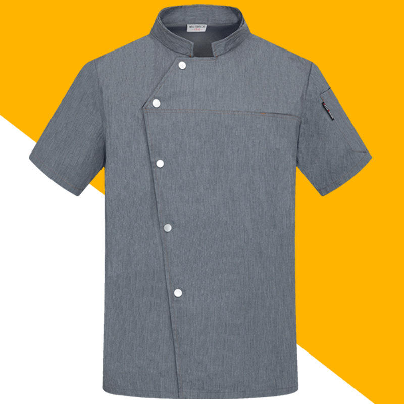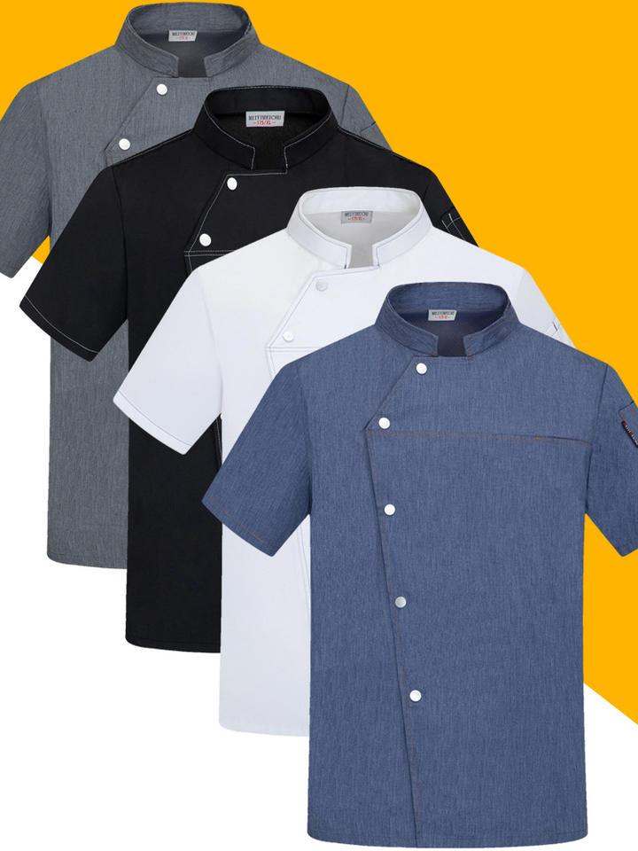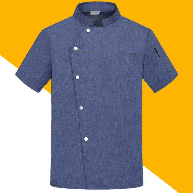Vêtements de travail de chef en denim respirant et tendance, unisexe, manches courtes, été, hôtel, restauration, vêtements de chef, résistant à l'eau, séchage rapide