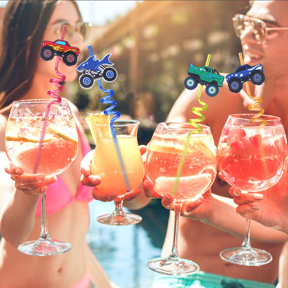 Paille de fête LAIMAI en PETG réutilisable de qualité alimentaire, motif de dessin animé tendance, design en spirale de camion, pour les anniversaires, les célébrations, les jeux, les cadeaux