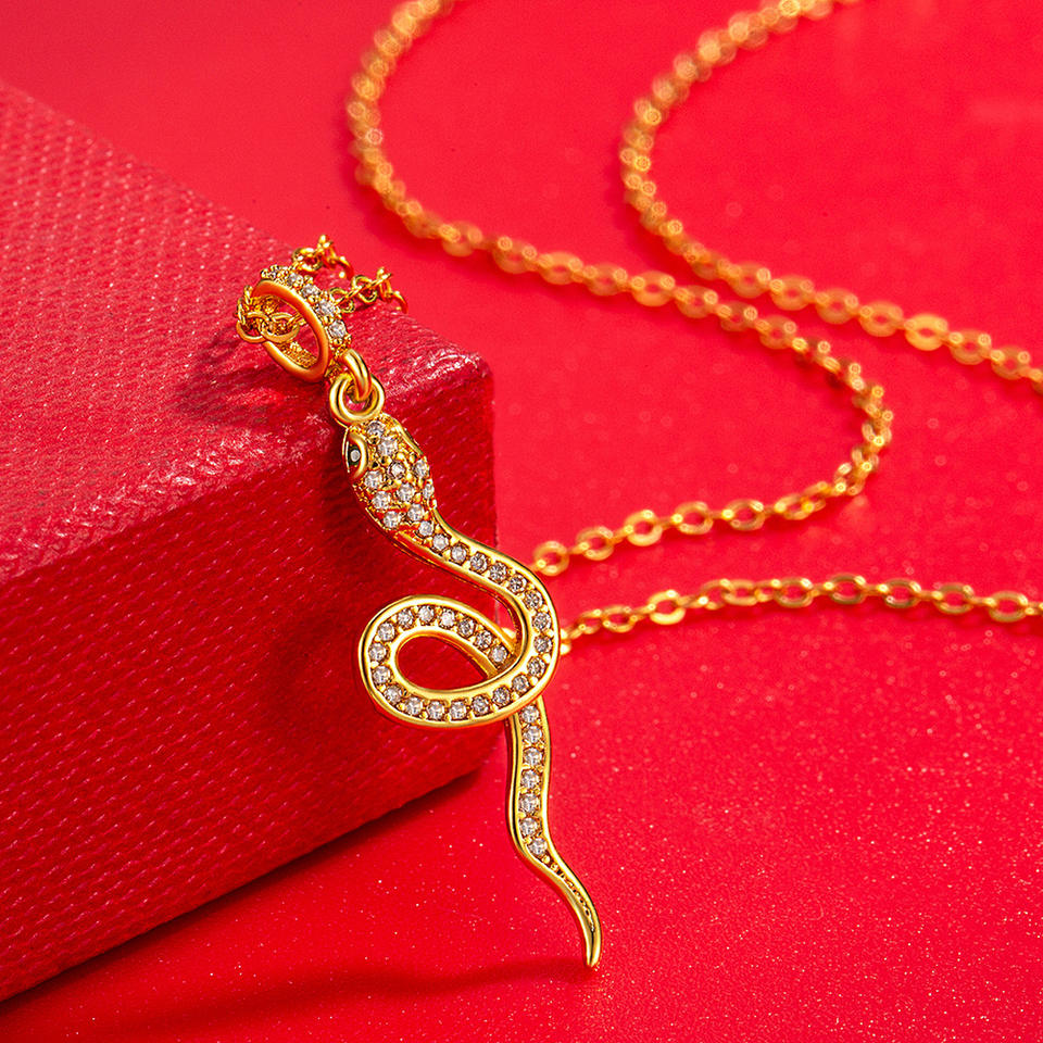À la mode Charme Serpent Pays Style Polyvalent Haut De Gamme Design Esprit Serpent Zircon Cuivre Collier Clavicule Chaîne Anniversaire