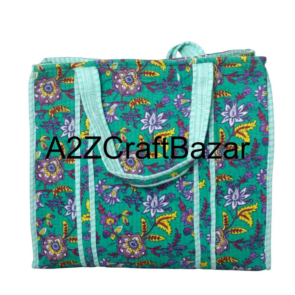 Fashionable Custom Big Tote Bags for Women Shopping Hand Block Printed Shoulder Purse Quilted Designer Bags