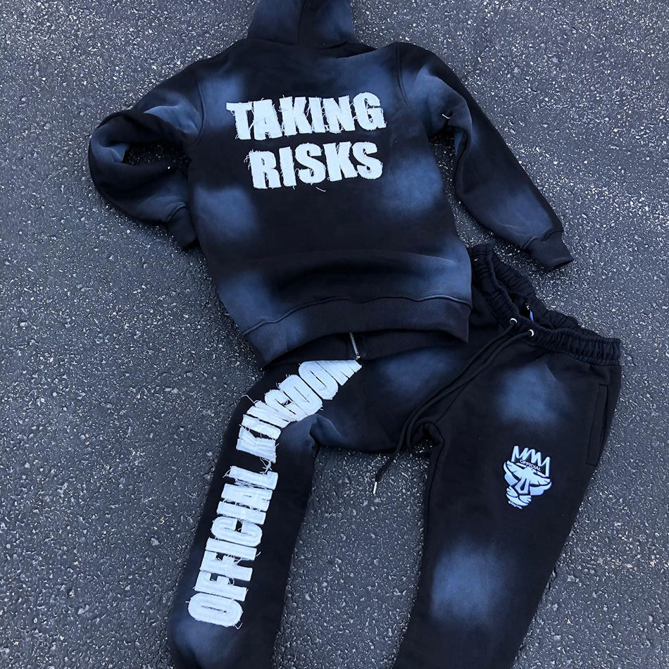 Survêtements déchirés personnalisés à la mode pour hommes Survêtements brodés déchirés Survêtement deux pièces pour l'hiver