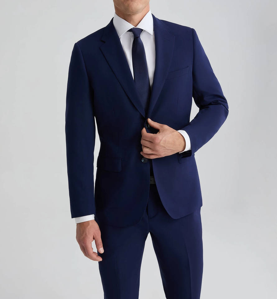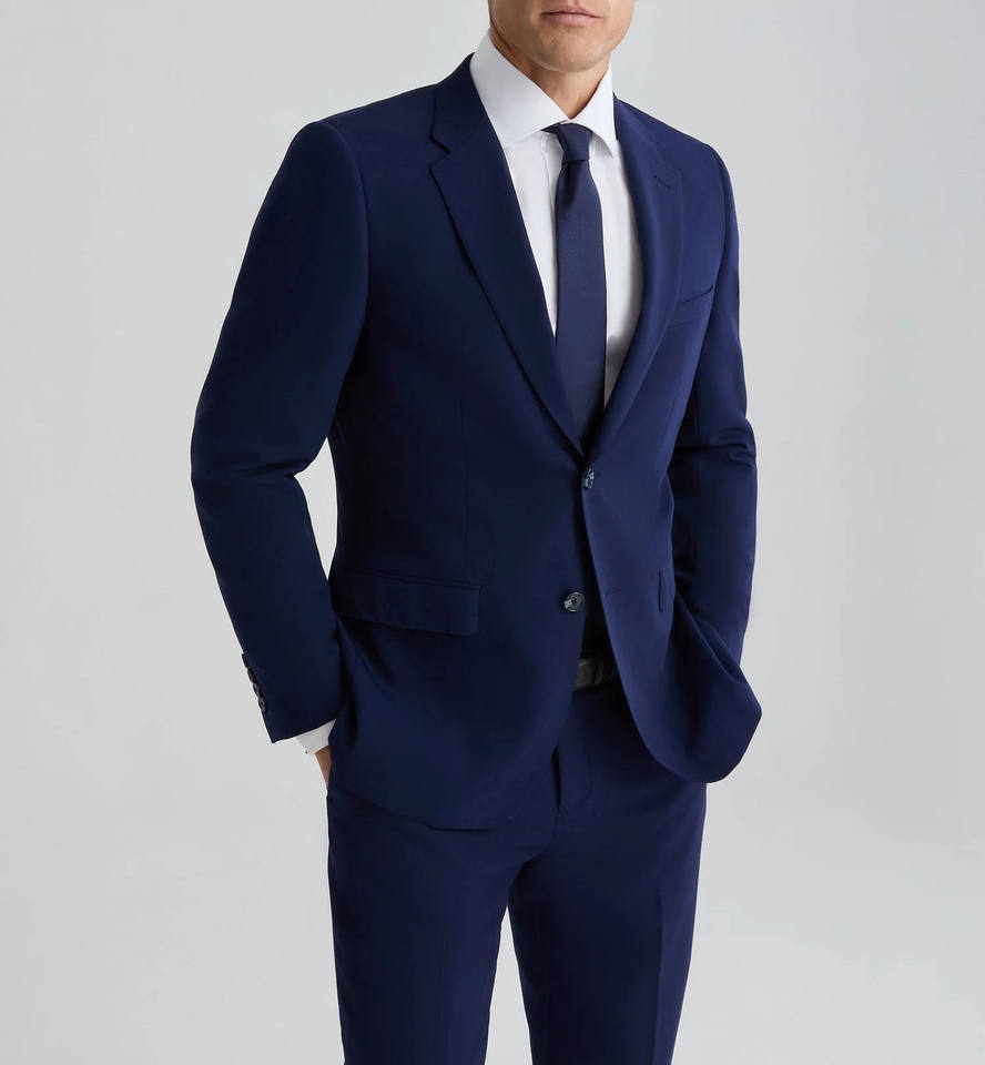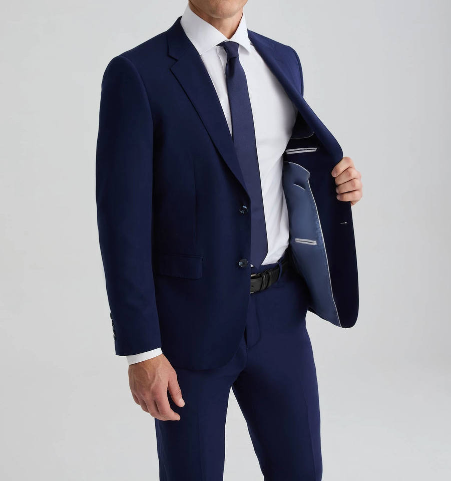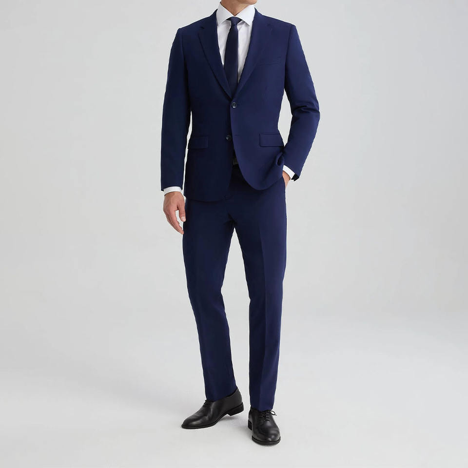 Costume bleu marine classique deux pièces de haute qualité, fabriqué au Pakistan, couleur personnalisable, élégant, pour affaires, par un créateur de mode.
