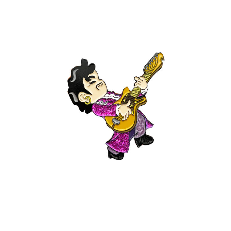Épingles de revers en émail souple, design personnalisé, motif chanteur avec guitare, violet scintillant, en métal, tendance