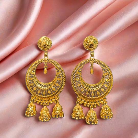 Boucles d'oreilles conçues à la mode serties de boucles d'oreilles de style Jhumka plaqué or 22CT bijoux pour femmes portées par des exportateurs indiens