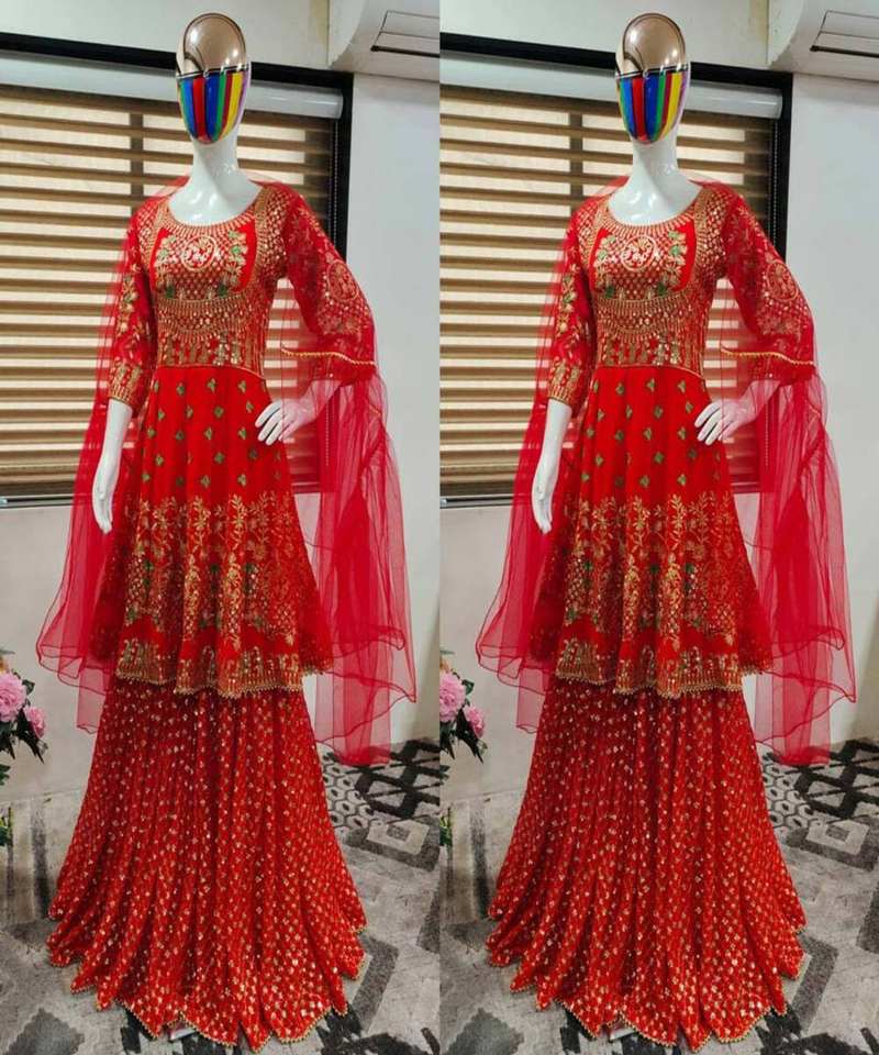 Designer à la mode vêtements de mariage lourd brodé Orange couleur carreaux conception 3 pièces Salwar Kameez costume Dupatta indien filles vêtements