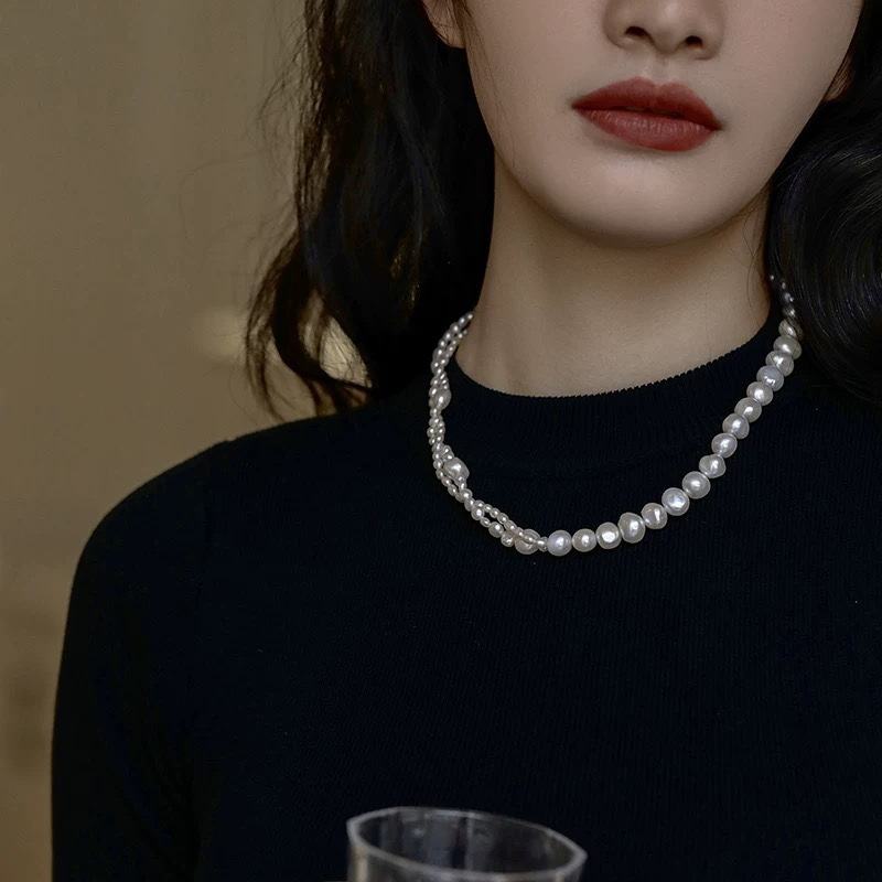 Fashionable French Retro Unique Design Women's Style Irregular Baroque Freshwater Pearl Necklace Loose Commuter Sweater Chain