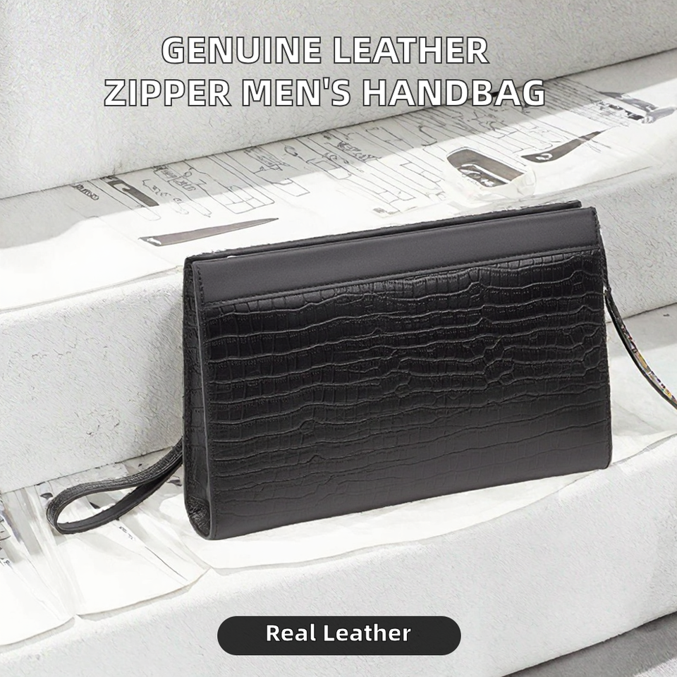 Sacs à main pour hommes en cuir de vache véritable à la mode avec fermeture éclair, doublure en polyester de haute qualité, modèle toutes saisons, option de logo personnalisé, OEM