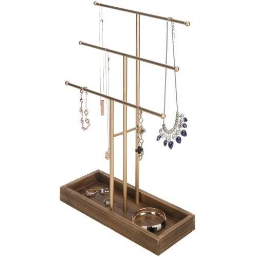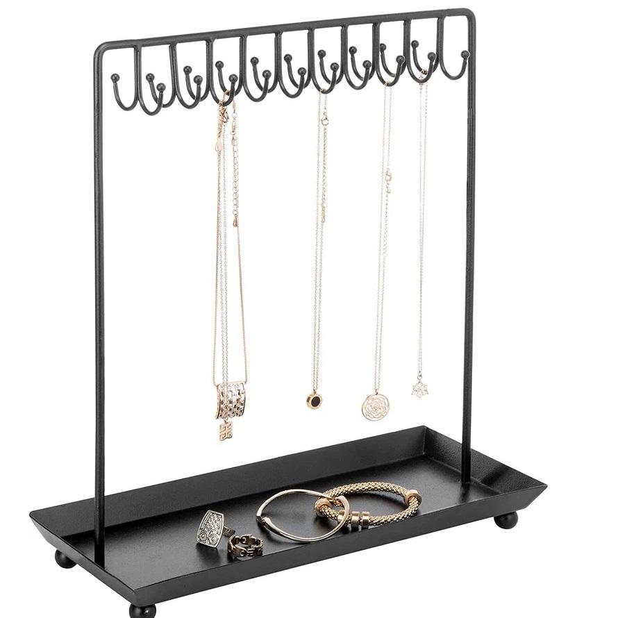 Support de boucle d'oreille en métal coulé doré à la mode présentoir à bijoux à couleur bloquée pour bagues et collier avec gravure de Noël