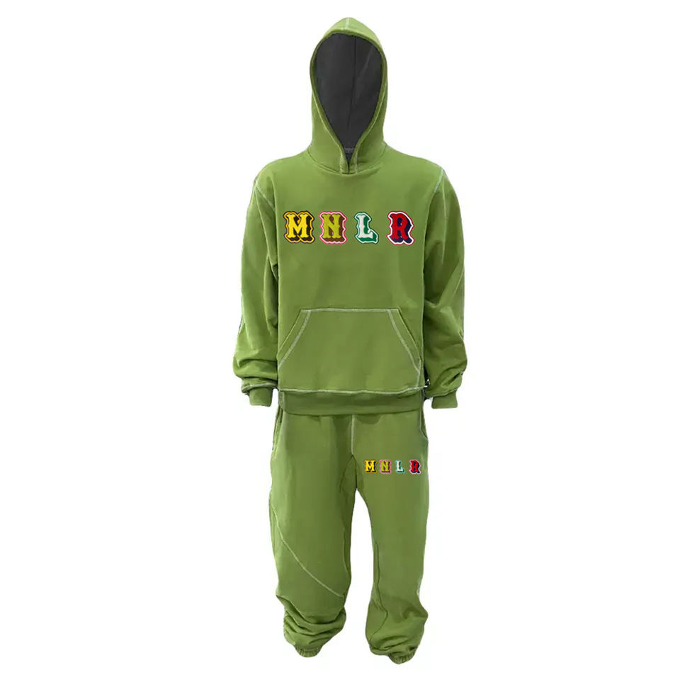 À la mode vert hommes survêtements coton Jogging costume personnalisé broderie Logo vêtements de sport confortable à manches longues tenue de course