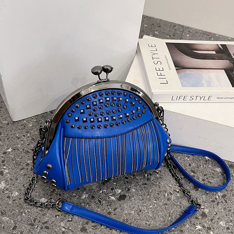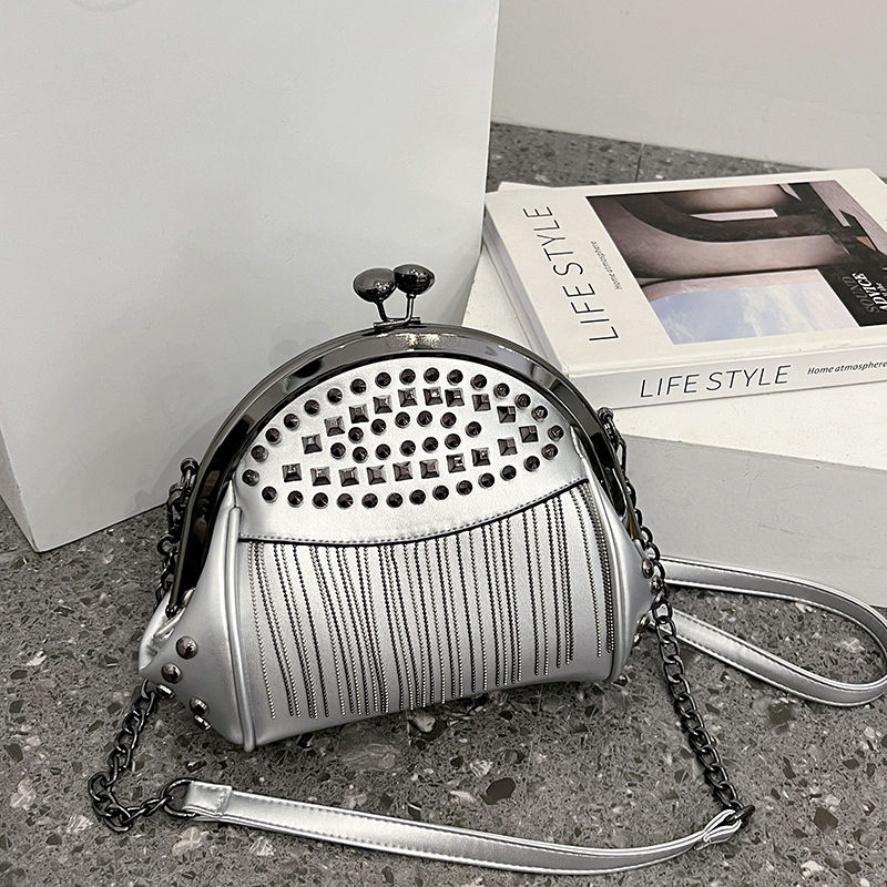 Sac à main élégant pour femme, avec doublure en polyester, design à rivets et pompons. Sac à main de luxe de créateur.2806
