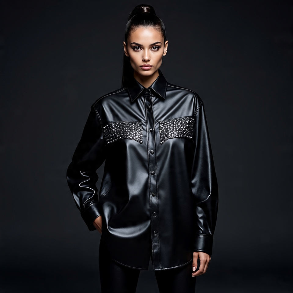 Keywords:Ladies Sheep Leather Shiny Shirts