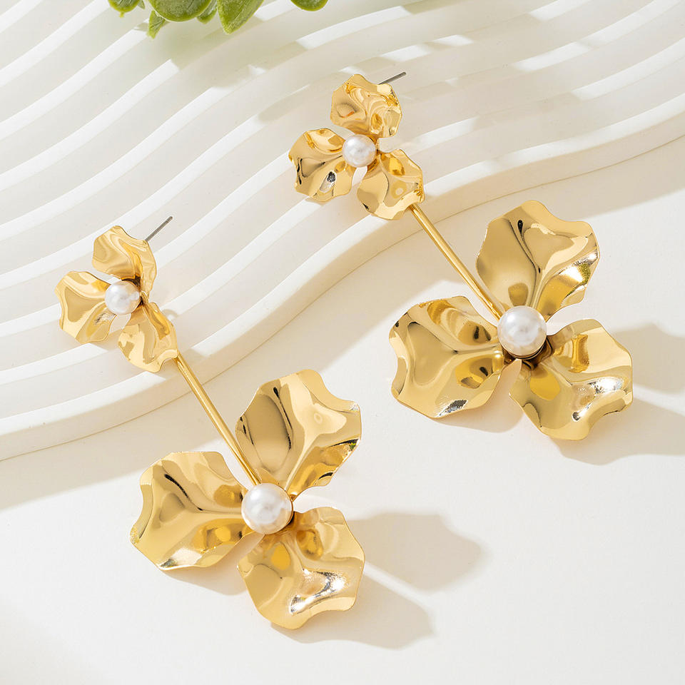 Fashionable Light Luxury Alloy Flower Inlaid Pearl Tassel Ladies Earrings