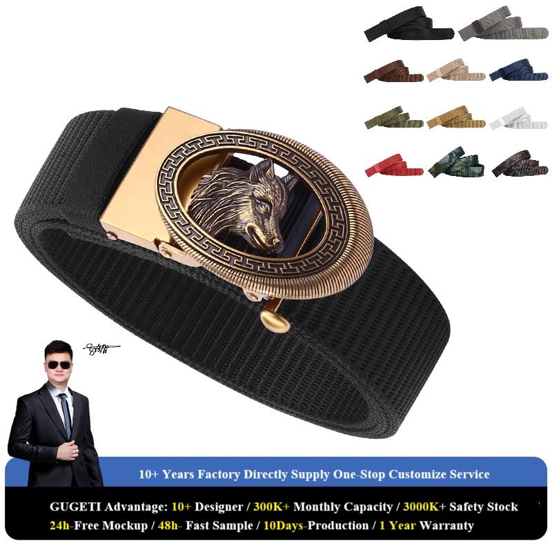 GUGETI Men's Belt Golden Sliver Wolf Automatic buckle tank belt 3.4cm