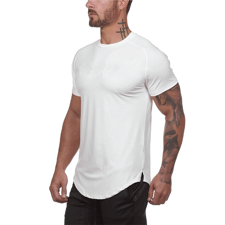 T-shirts de sport pour hommes, tendance, actifs, respirants, en tissu tricoté écologique, en spandex/coton, séchage rapide