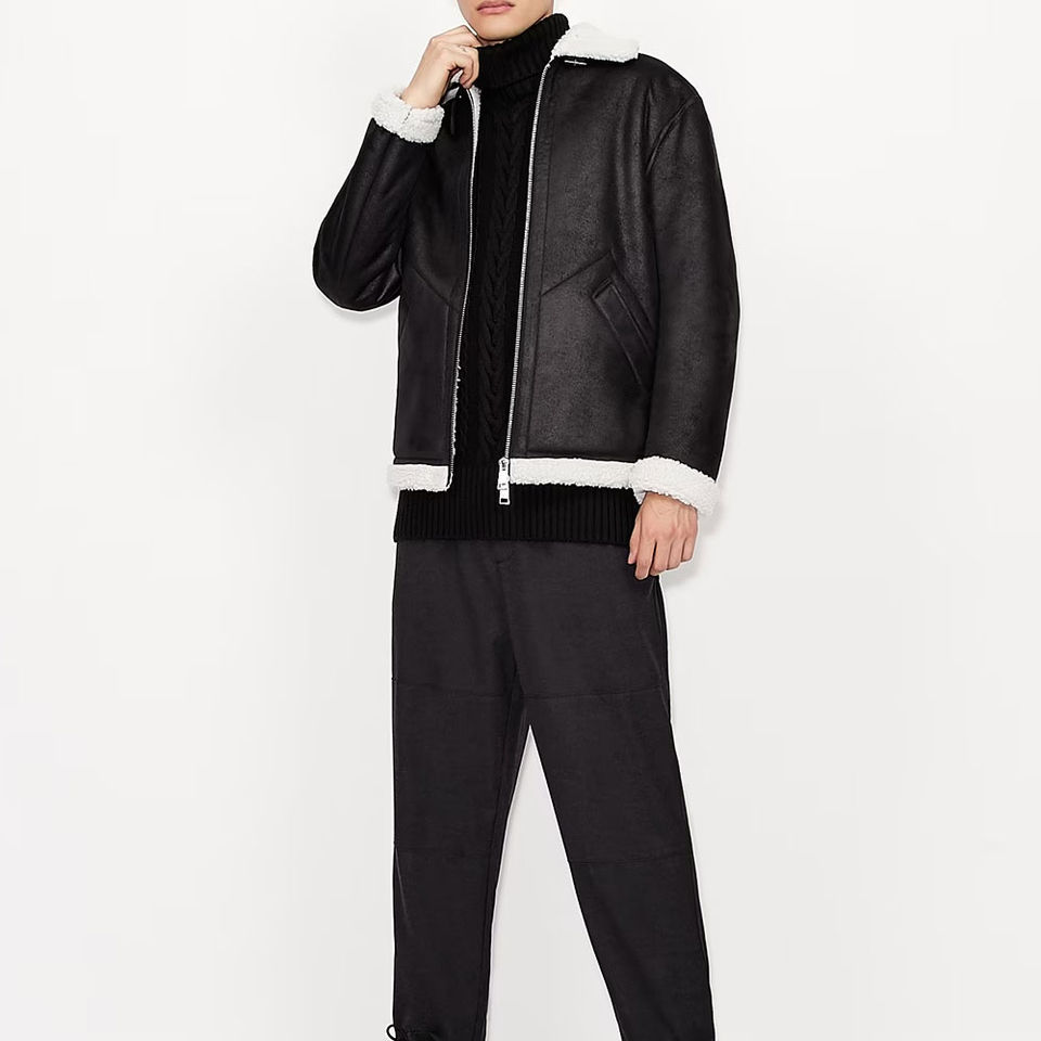Veste en cuir PU pour hommes à la mode personnalisé toile col montant blouson aviateur lourd et expédition rapide