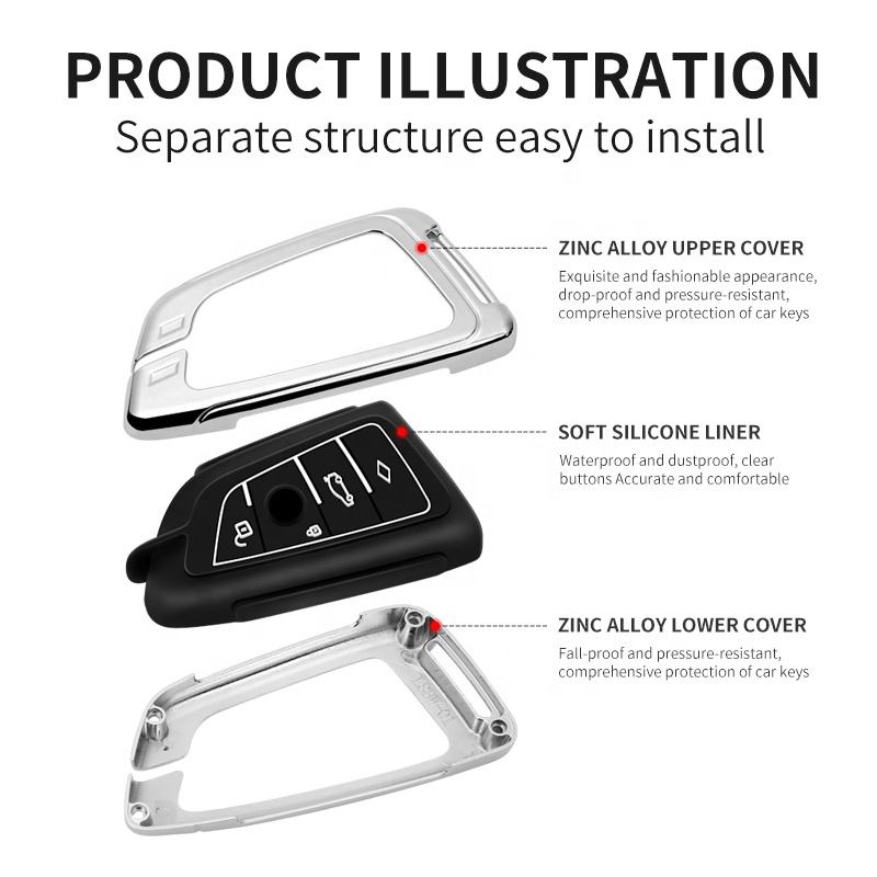 Porte-clés de voiture en métal à la mode étui en alliage de Zinc protéger la coque de clé de voiture avec porte-clés de voiture pour couverture de clé Bmw