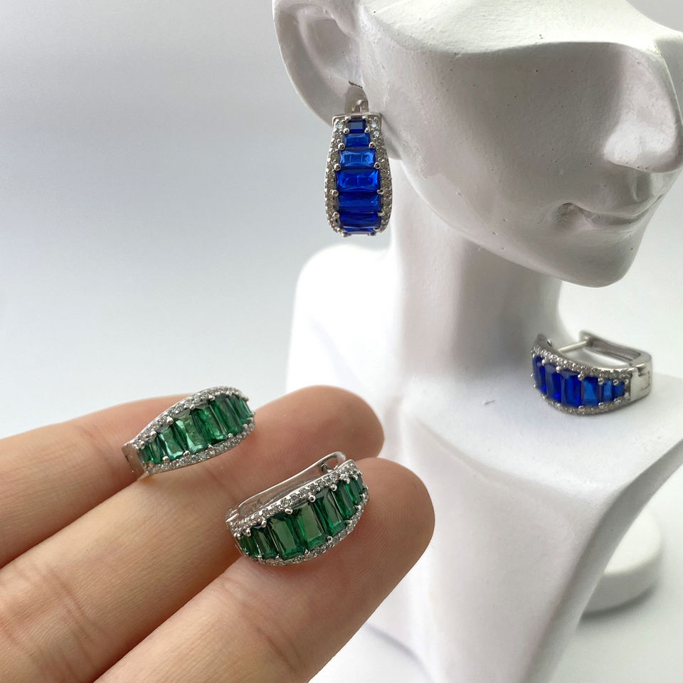 Boucles d'oreilles géométriques en zircone micro-incrusté à la mode Boucles d'oreilles Borland vert polyvalent Bijoux