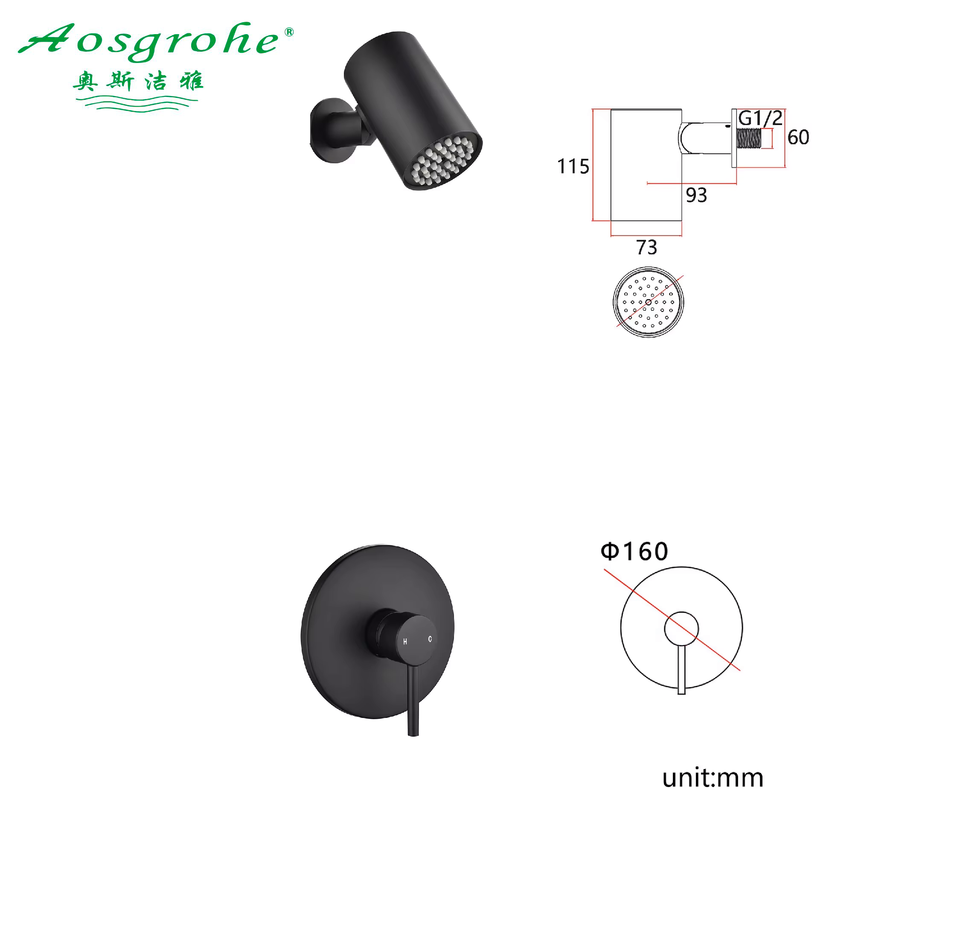 Pomme de douche design moderne en laiton, étanche, avec caméra cachée, noir, avec interrupteurs chaud et froid