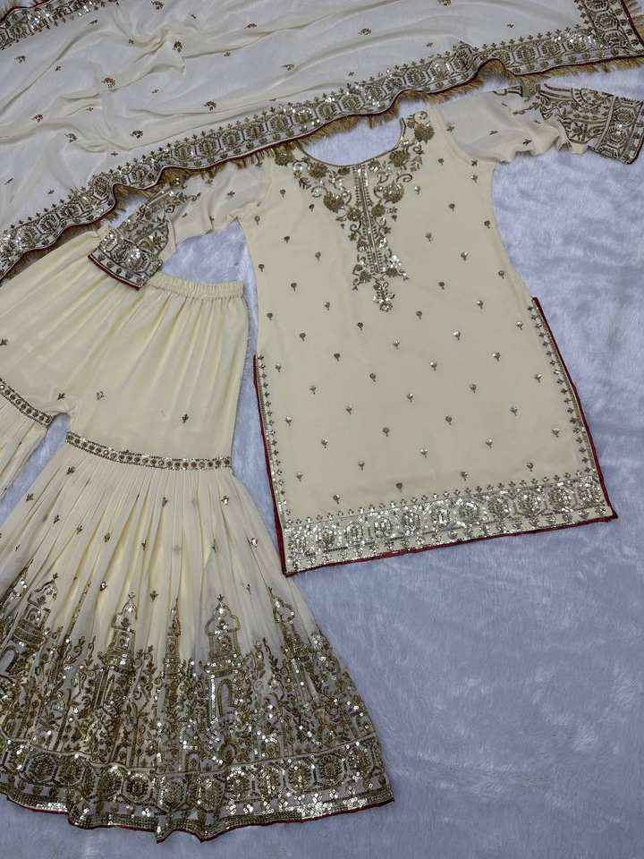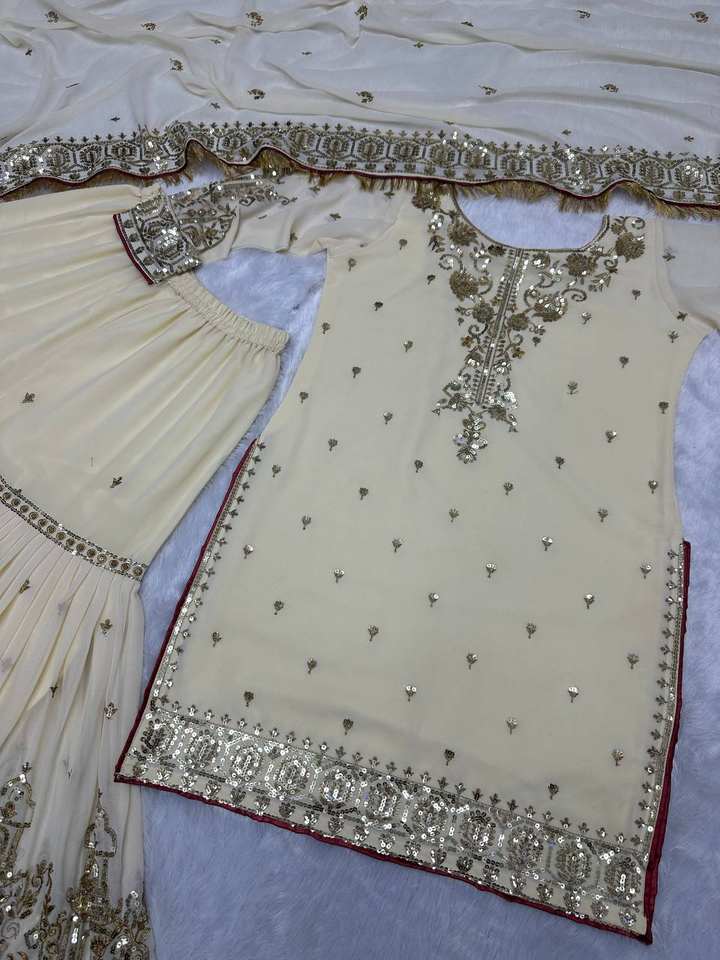 Antra Lifestyle – Nouvelle tenue élégante style Bollywood, haut, sharara et dupatta en georgette, richement brodés de sequins