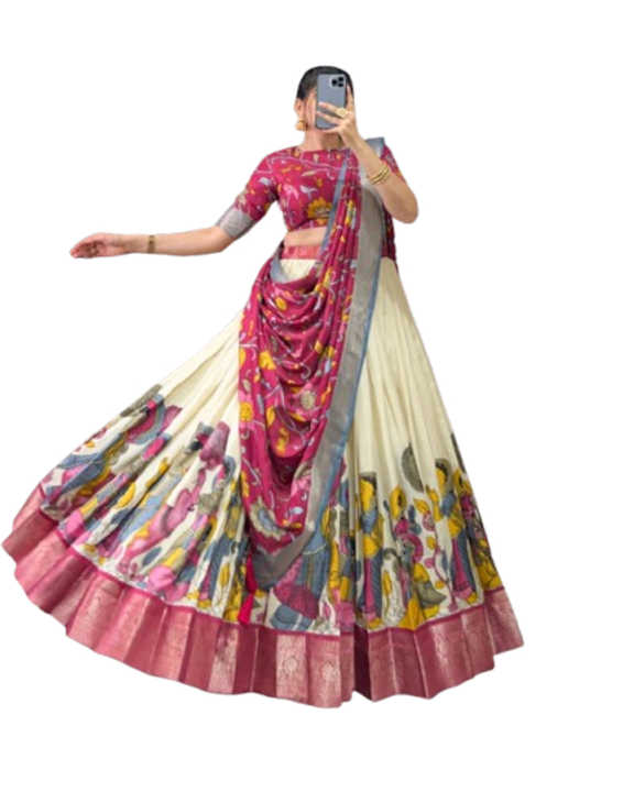 Dupatta work:Kalamkari Print With Zari Weaving Border Also Comes With Both Side