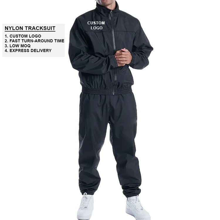 Ensemble de survêtement décontracté pour homme, tendance, logo personnalisé OEM, imprimé, hiver, vintage, uni, 100% coton, 2 pièces, coupe-vent, jogging