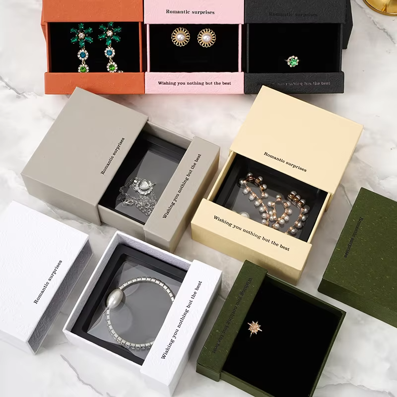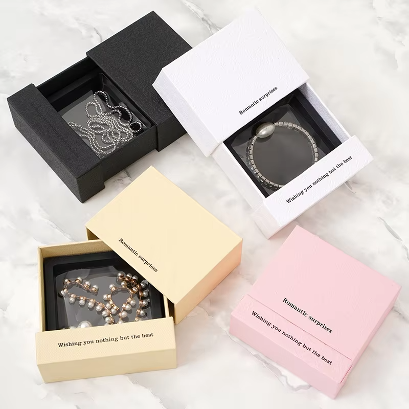 Boîte d'emballage de bijoux rectangulaire PE à la mode Style tiroir carré pour colliers boucles d'oreilles étui de Suspension antioxydant