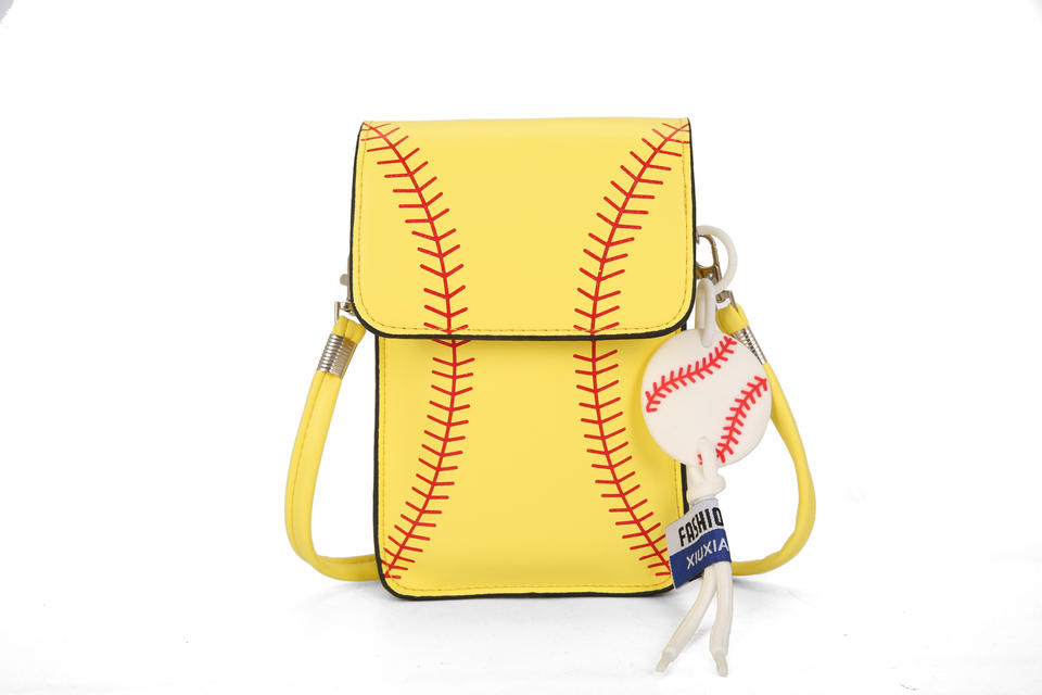 Fashionable PU Baseball Print Single Shoulder Crossbody Bag Vertical Baseball Small Square Phone Bag with Transparent Window