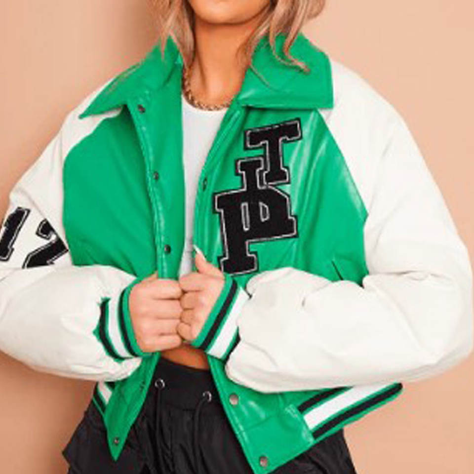 Fashionable Pink Women's High School Varsity Jacket with Stand Collar Wool Lining and Cotton Filled-Trending Ladies Gear