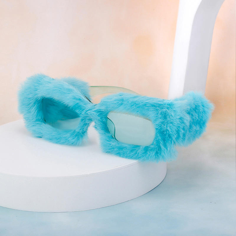 Lunettes de soleil carrées en peluche tendance pour femmes, protection UV400, matériau PC, production sur scène, couleur noire