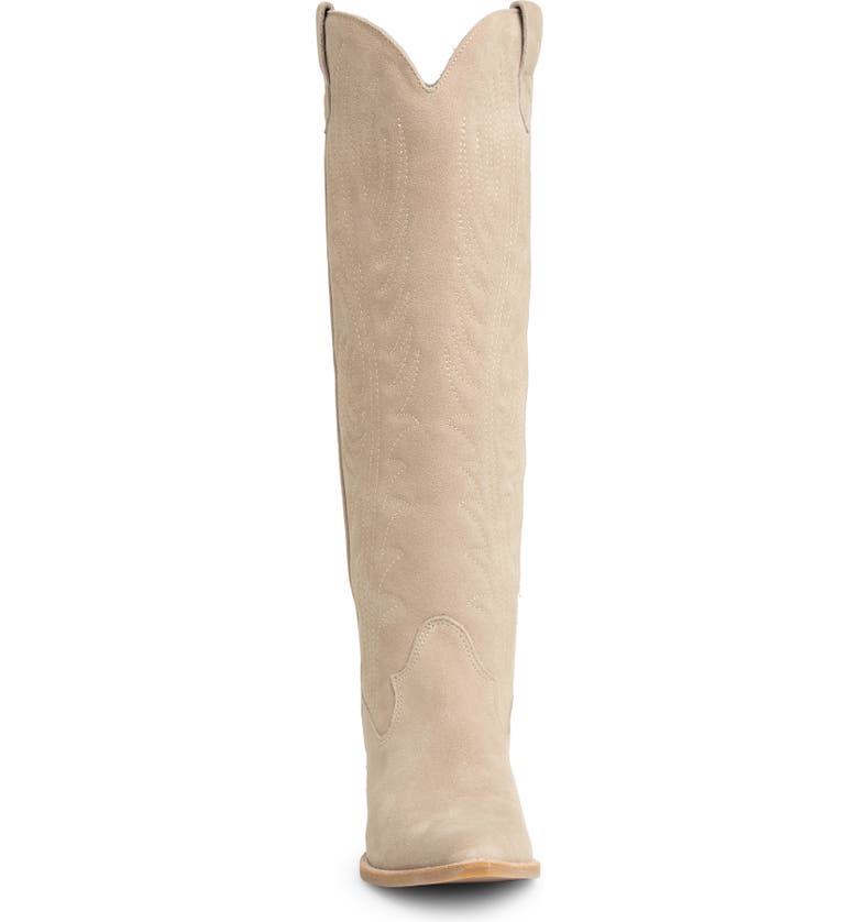 À la mode bout pointu Beige rose Cowboy sur le genou femmes bottes pour femmes