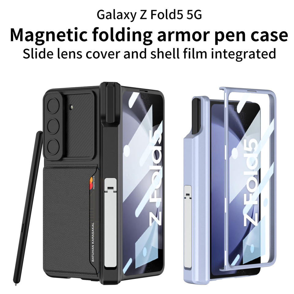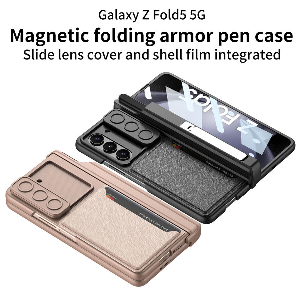 Housse de protection à la mode pour Samsung Fold5 sac de carte de fenêtre de poussée de téléphone portable pliant avec porte-stylo