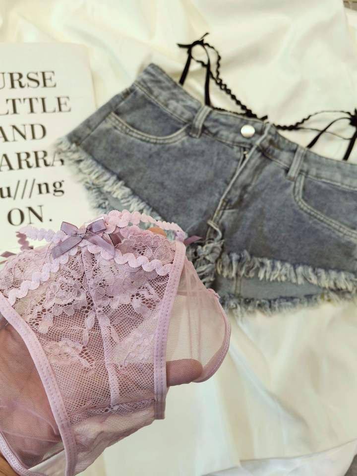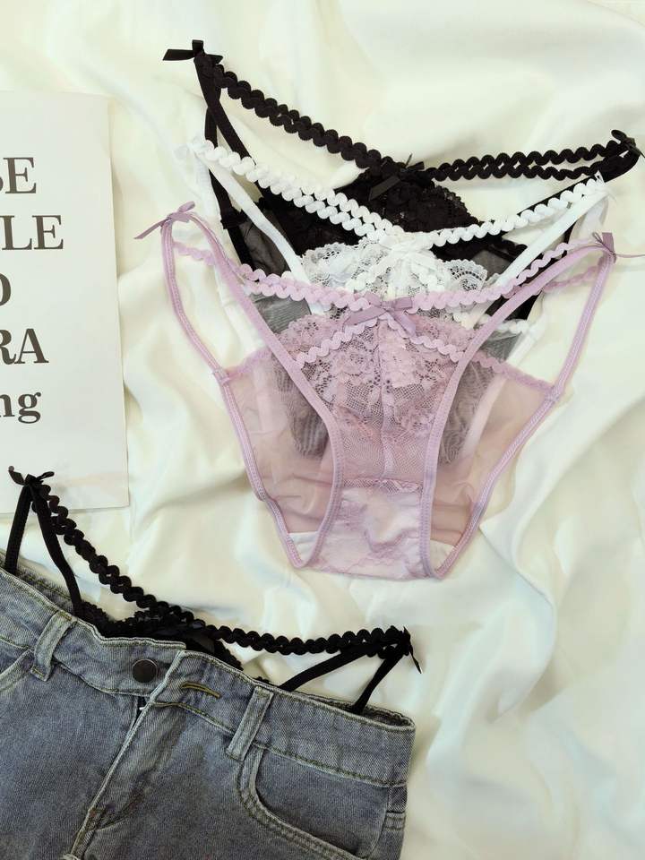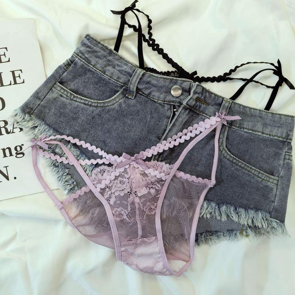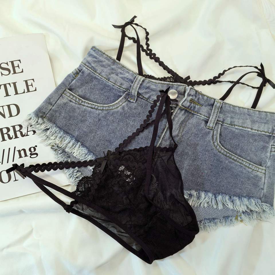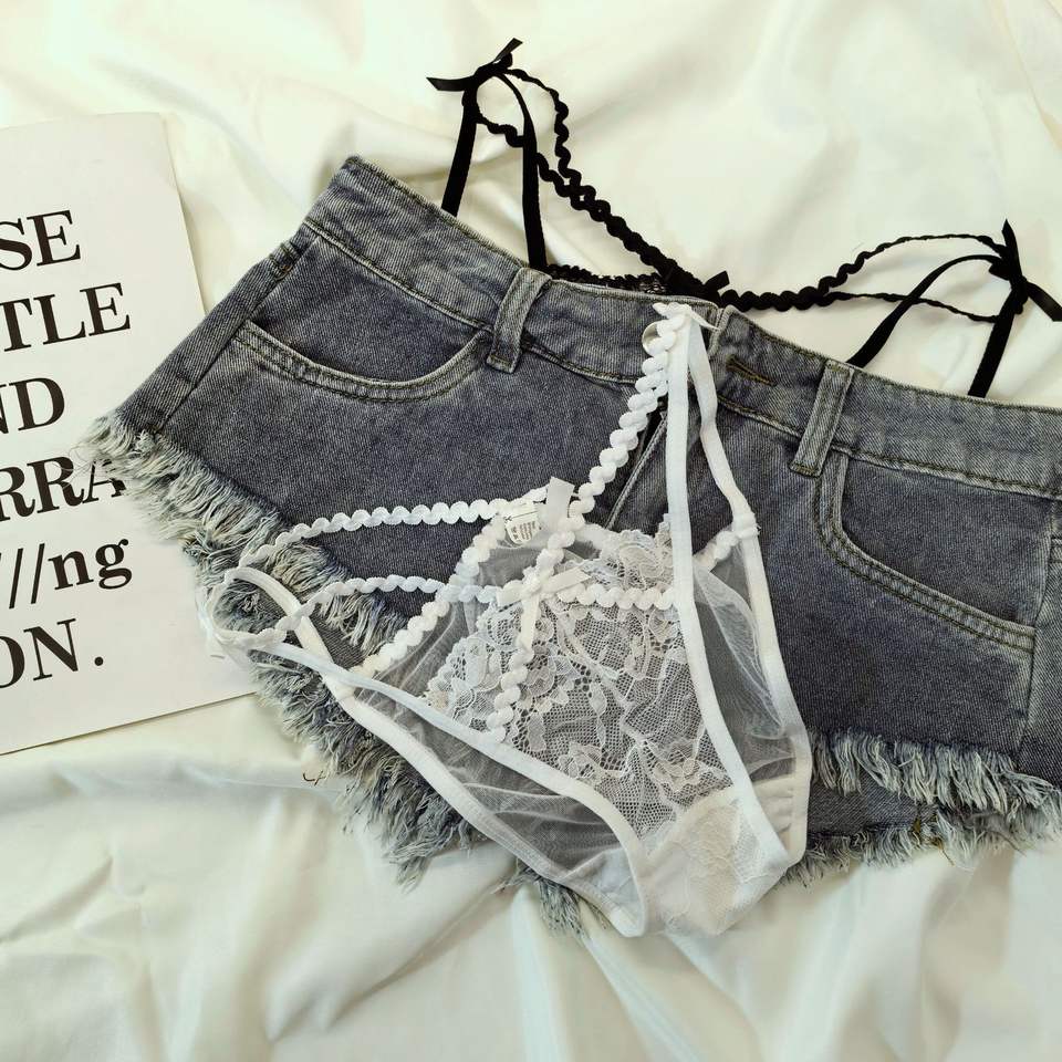Culotte T-back en dentelle rétro tendance avec ceinture fine - String sexy transparent taille basse pour femme