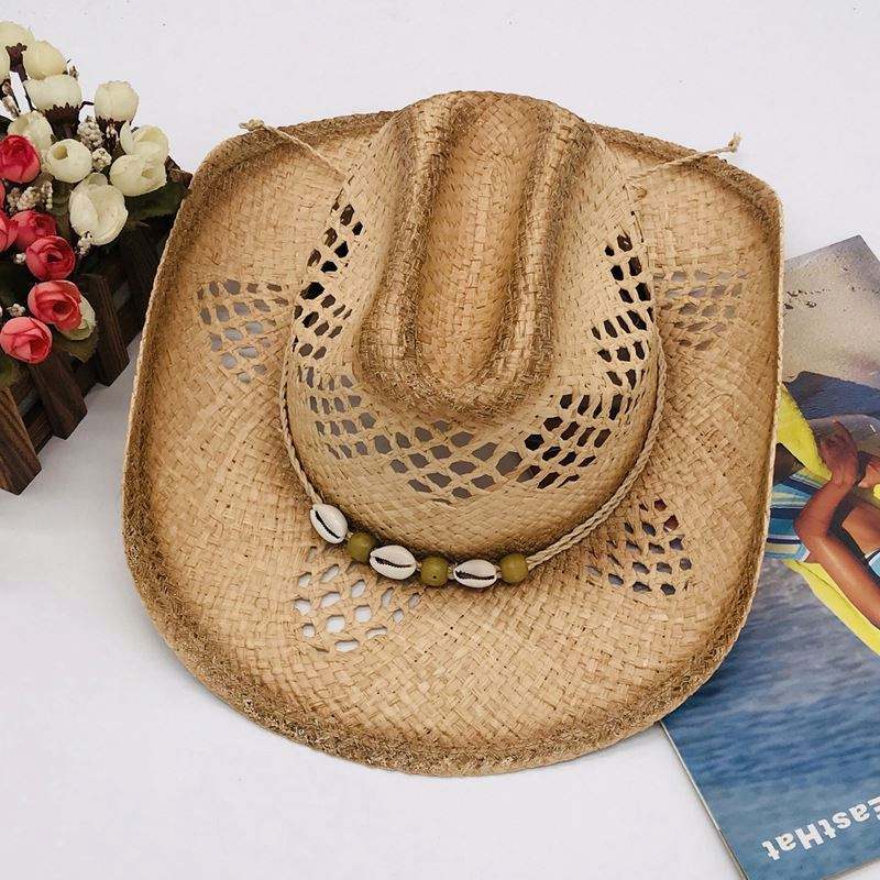 Chapeau de cowboy en paille de papier polyester pour homme, à bord retroussé, tendance, de haute qualité, pas cher, pour les voyages et les sports