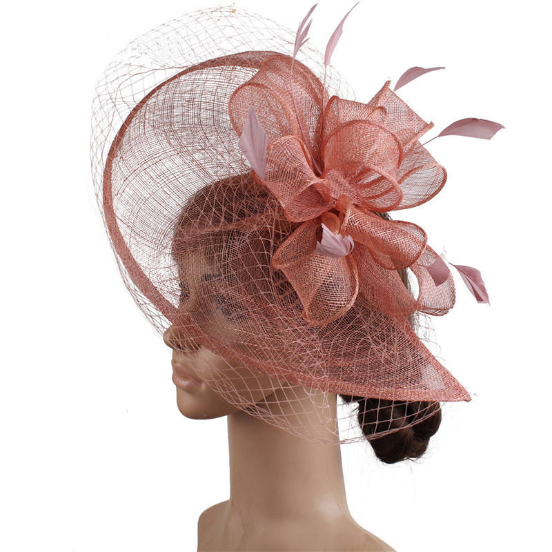 Fashionable Sinamay Kentucky Derby Lady's Fascinator Hats with Hair Clip Church Fascinator with Birdcage Veil & Feather