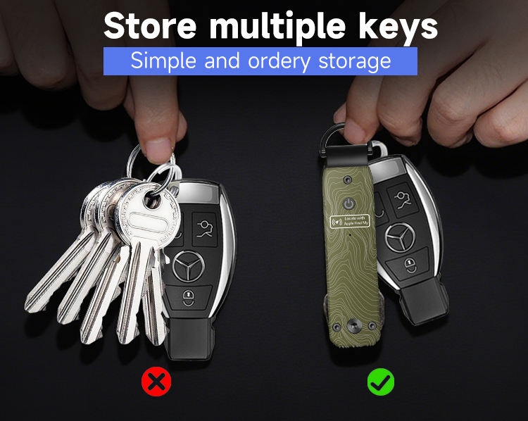 Organisateur de Clés Intelligent en Métal Mince et Tendance avec Localisateur Apple Find My, Nouveau Style, Porte-Clés Portefeuille avec Fermeture Suspendue