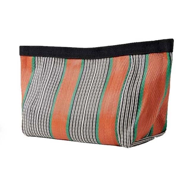 Recycled Nylon Striped Pattern Cosmetic Pouch